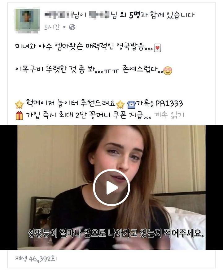페이스북 엠마왓슨 사생활 노출 비디오 클릭했다가는 이투데이